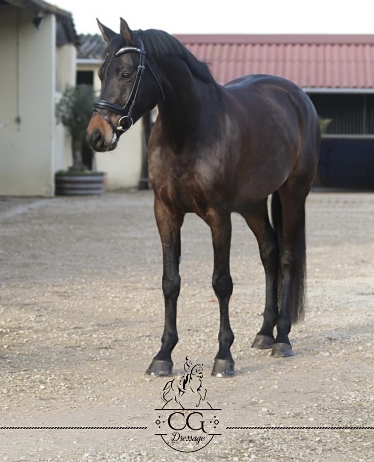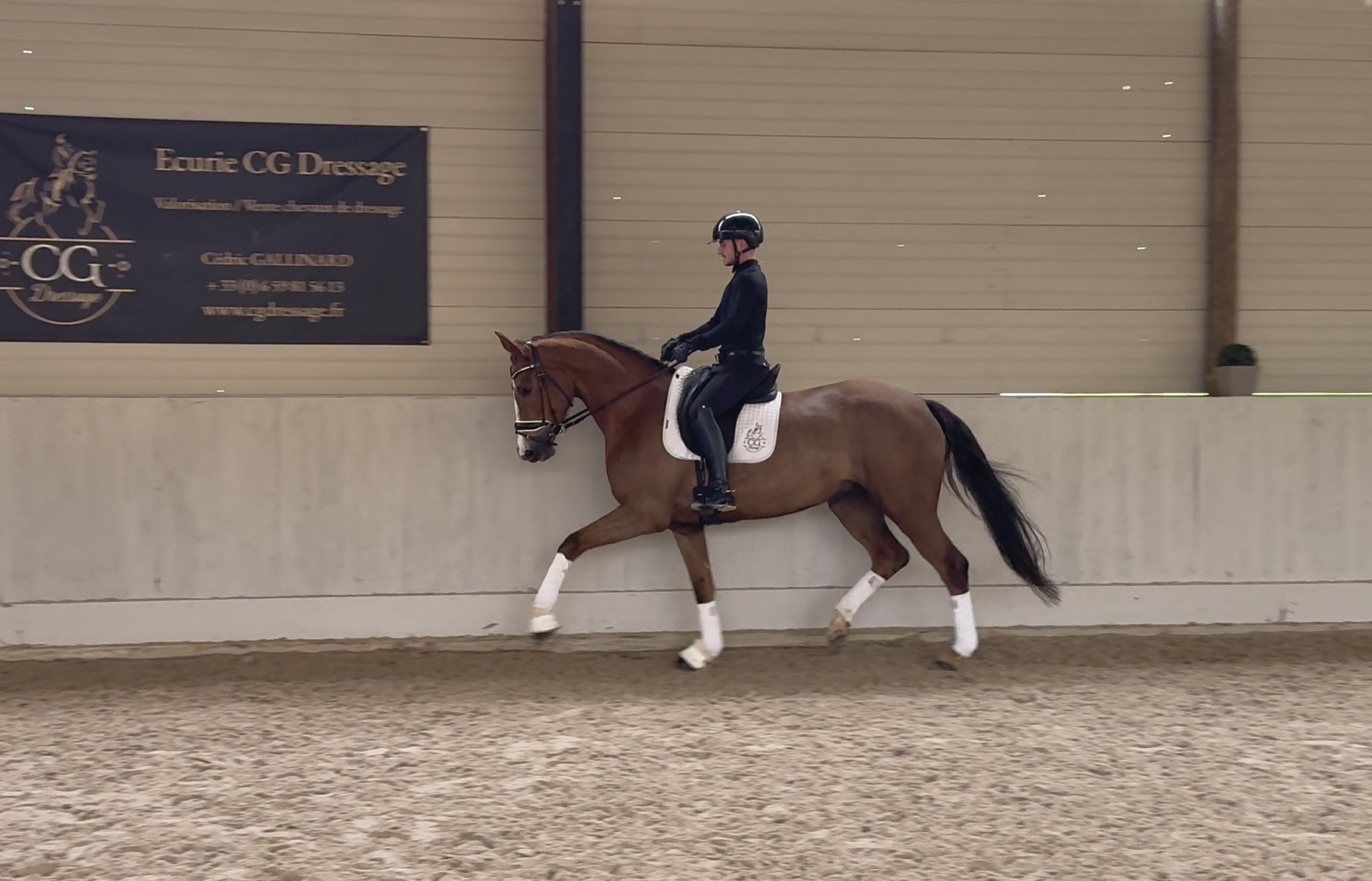 Bradley Cooper CG est un magnifique hongre Oldenbourg de 9 ans, doté d’un très gros potentiel sportif. Il maîtrise l’ensemble des mouvements du niveau Saint-Georges et Pro 1 Grand prix, et est actuellement en préparation pour le Grand Prix. Cheval extrêmement bien dressé, il se distingue par trois très bonnes allures, une grande facilité d’utilisation et une vraie générosité au travail. C’est un partenaire idéal pour évoluer sur le circuit international Juniors, Jeunes Cavaliers, U25 ou Pro Élite, mais aussi pour un amateur ambitieux souhaitant accéder au haut niveau avec un véritable maître d’école. Bradley Cooper CG permet de prendre du plaisir dans les airs de haute école, tout en offrant sécurité, qualité et progression. Un cheval complet, fiable et expressif, prêt à accompagner son cavalier vers le plus haut niveau.